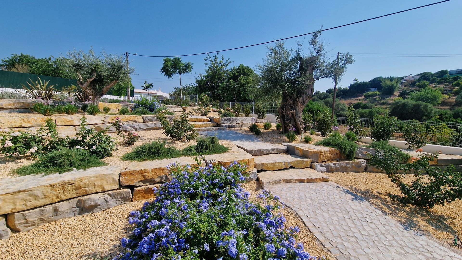 espécies resistentes à seca, criou-se um jardim mediterrânico resiliente, onde a