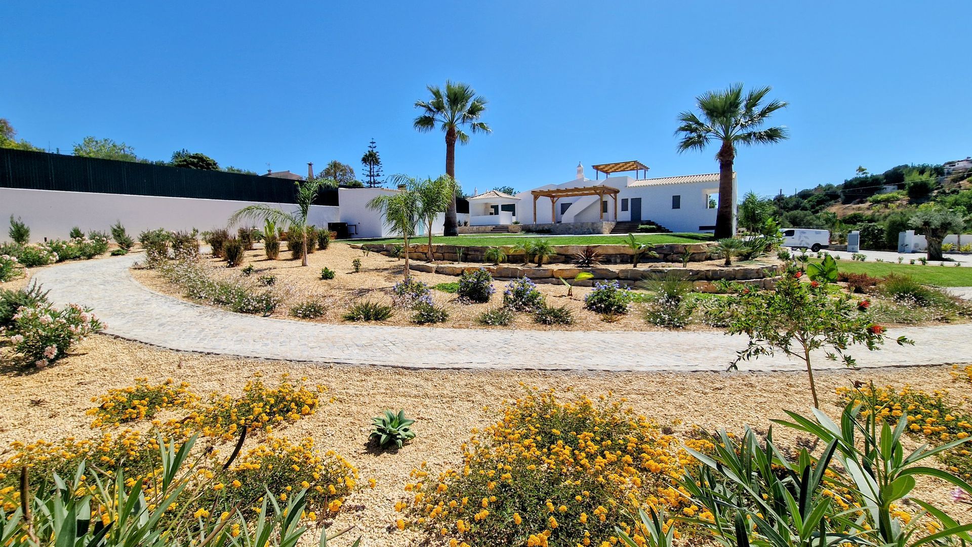 O projeto de arquitetura paisagista para esta moradia assenta num compromisso com a sustentabilidade. Através de uma seleção criteriosa de